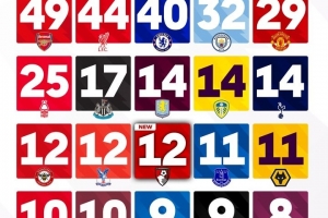 体育资讯4月12日讯 本轮英超,阿森纳主场爆冷1-2不敌伯恩茅斯,后者也在联赛已经12轮不败。英超官方也列出了各队在联赛的最长连续不败纪录:
