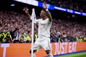 维尼修斯要球、突破、制造失衡、一周内造下两粒决定性点球,用一记未来金球奖级别的射门打入德比制胜球,与重新为他欢呼的伯纳乌紧紧相拥,完成与英雄的和解。