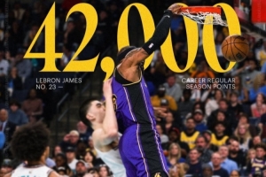 本场过后,詹姆斯的常规赛生涯中得分来到42020分,稳居历史第一(第二是贾巴尔的38387分)。